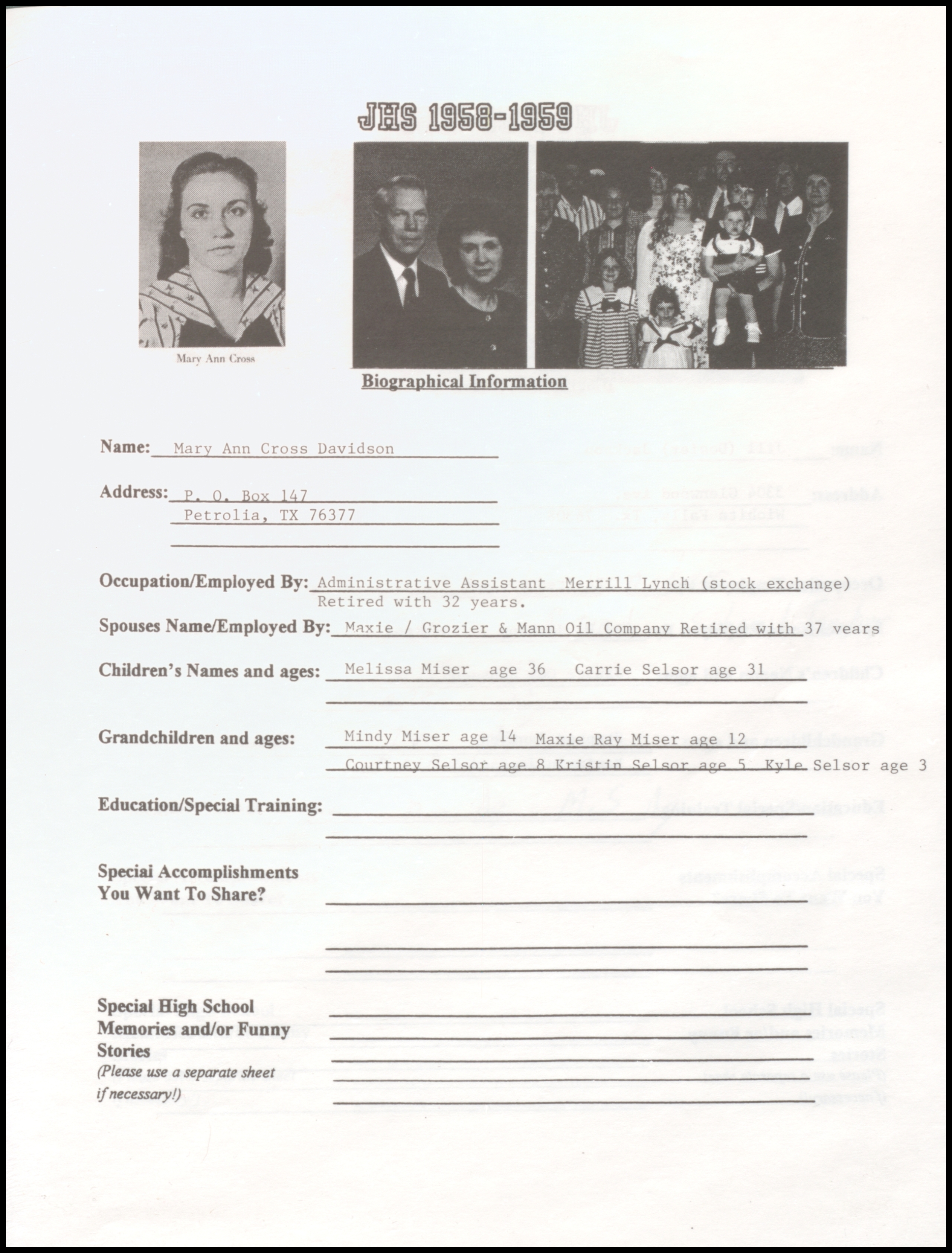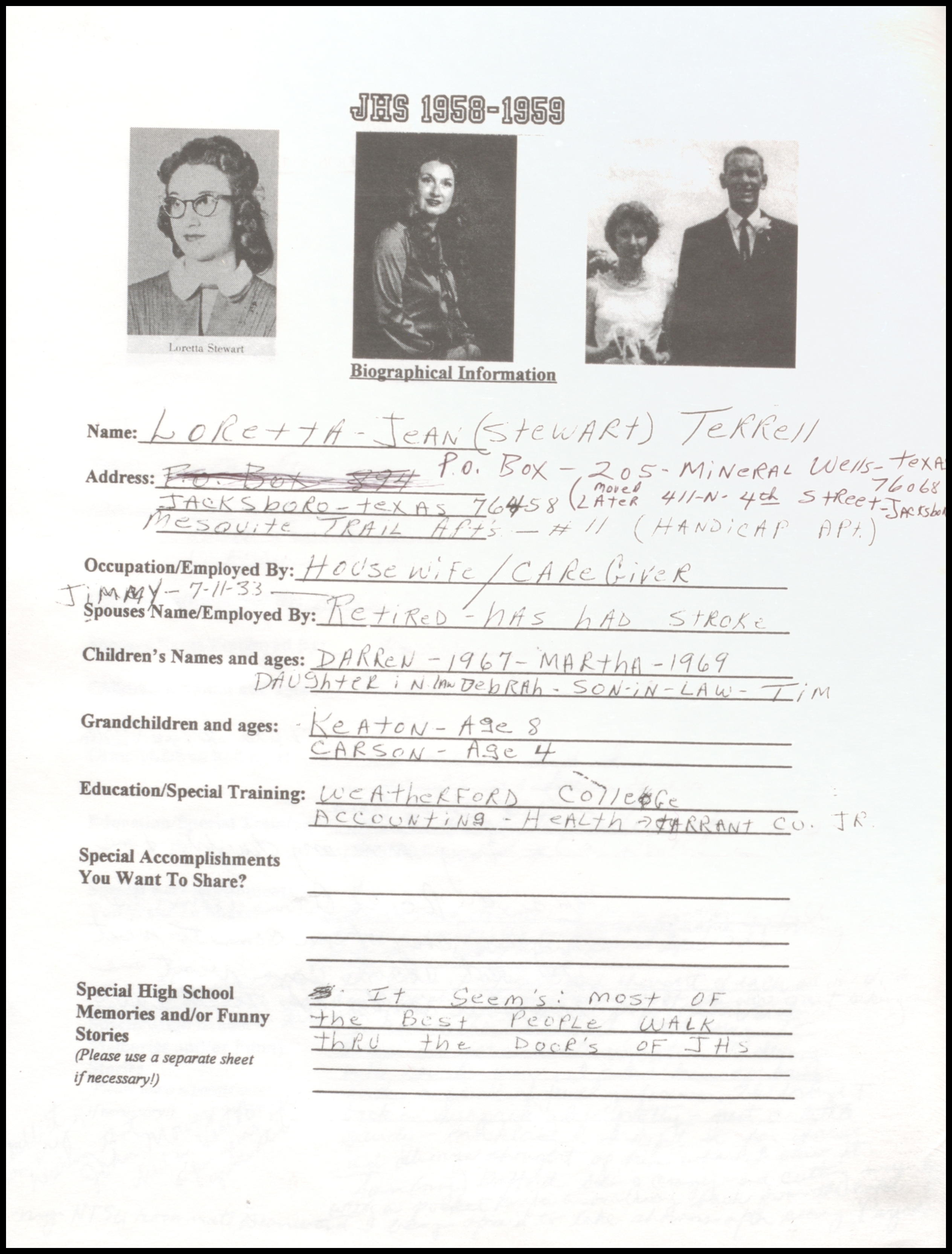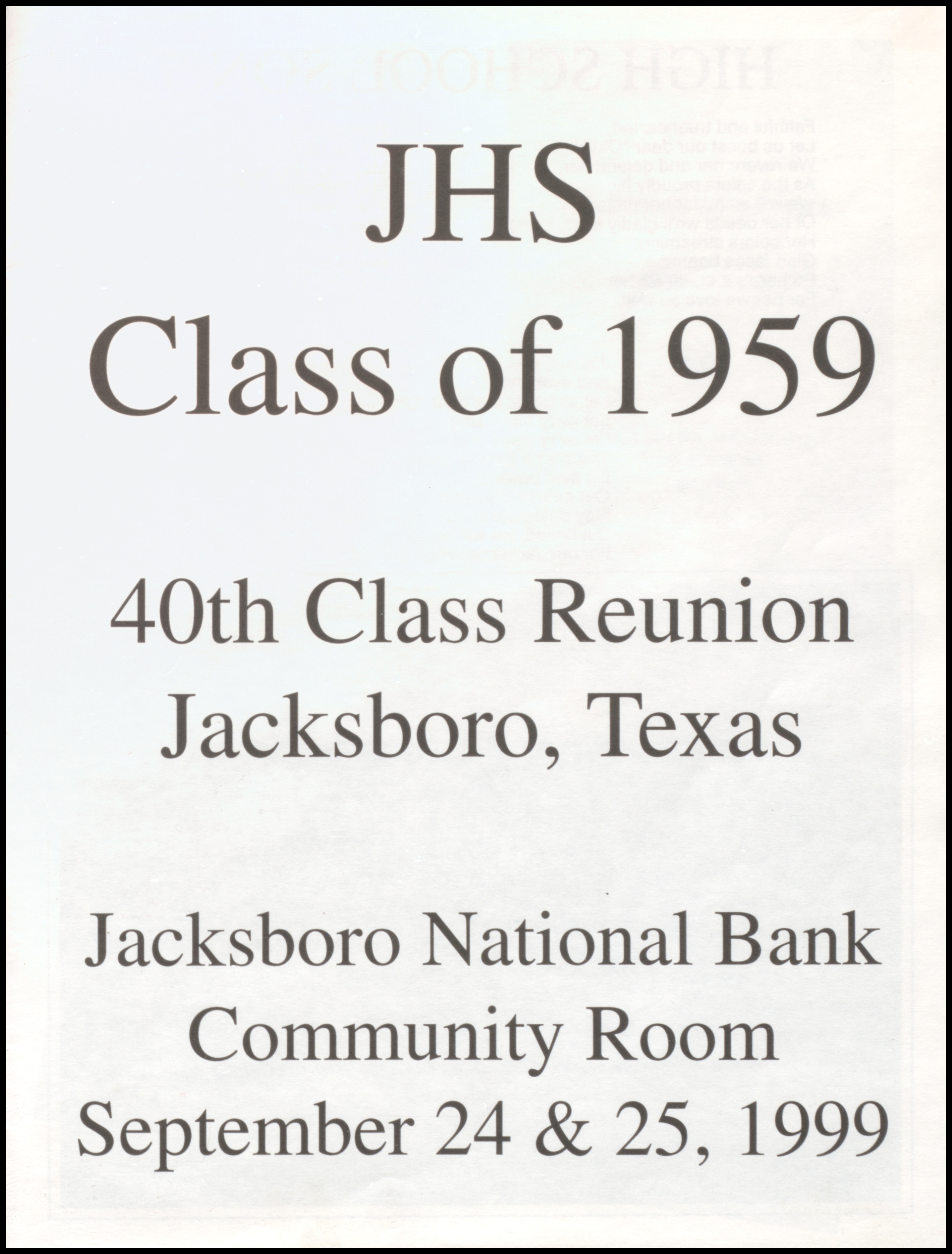of 1959 - In 1999 - 40th Class Reunion