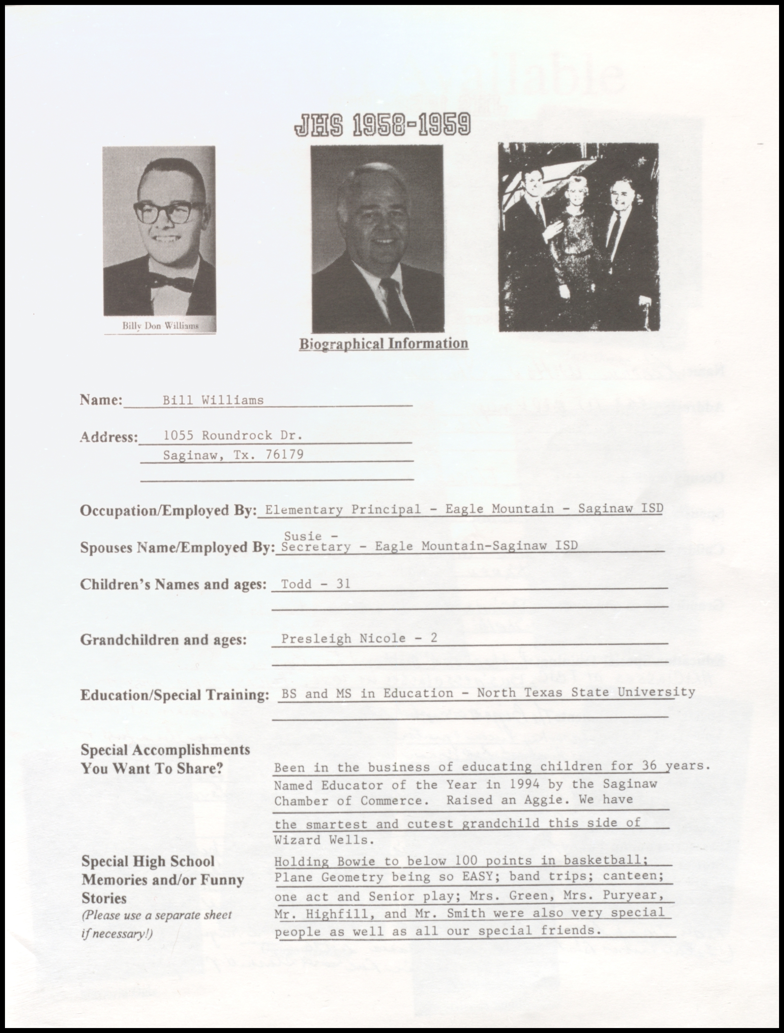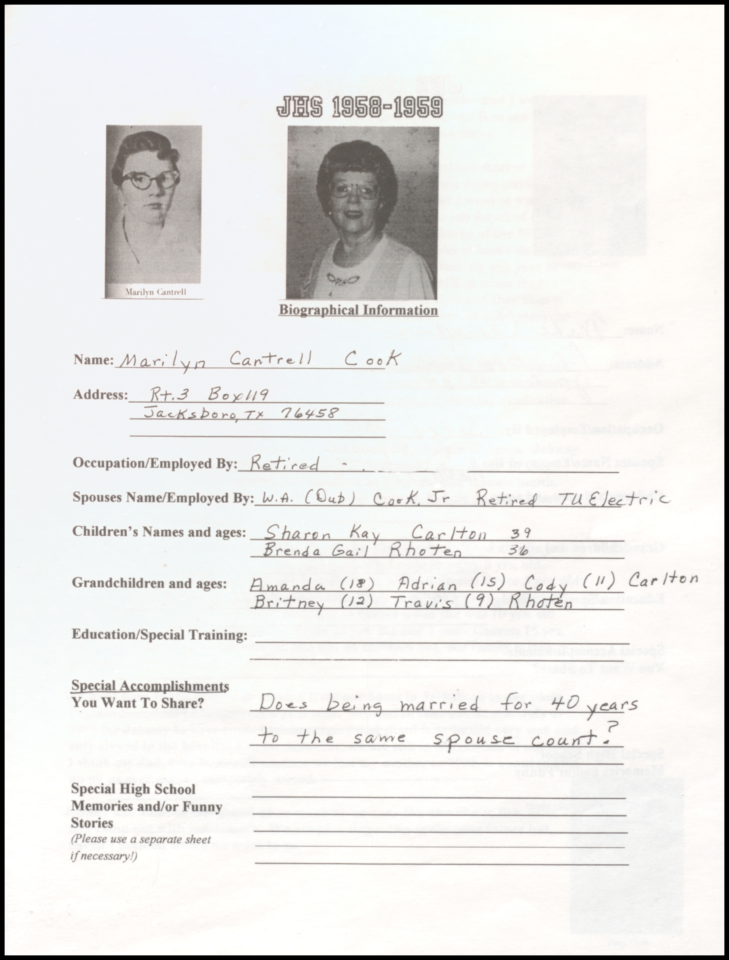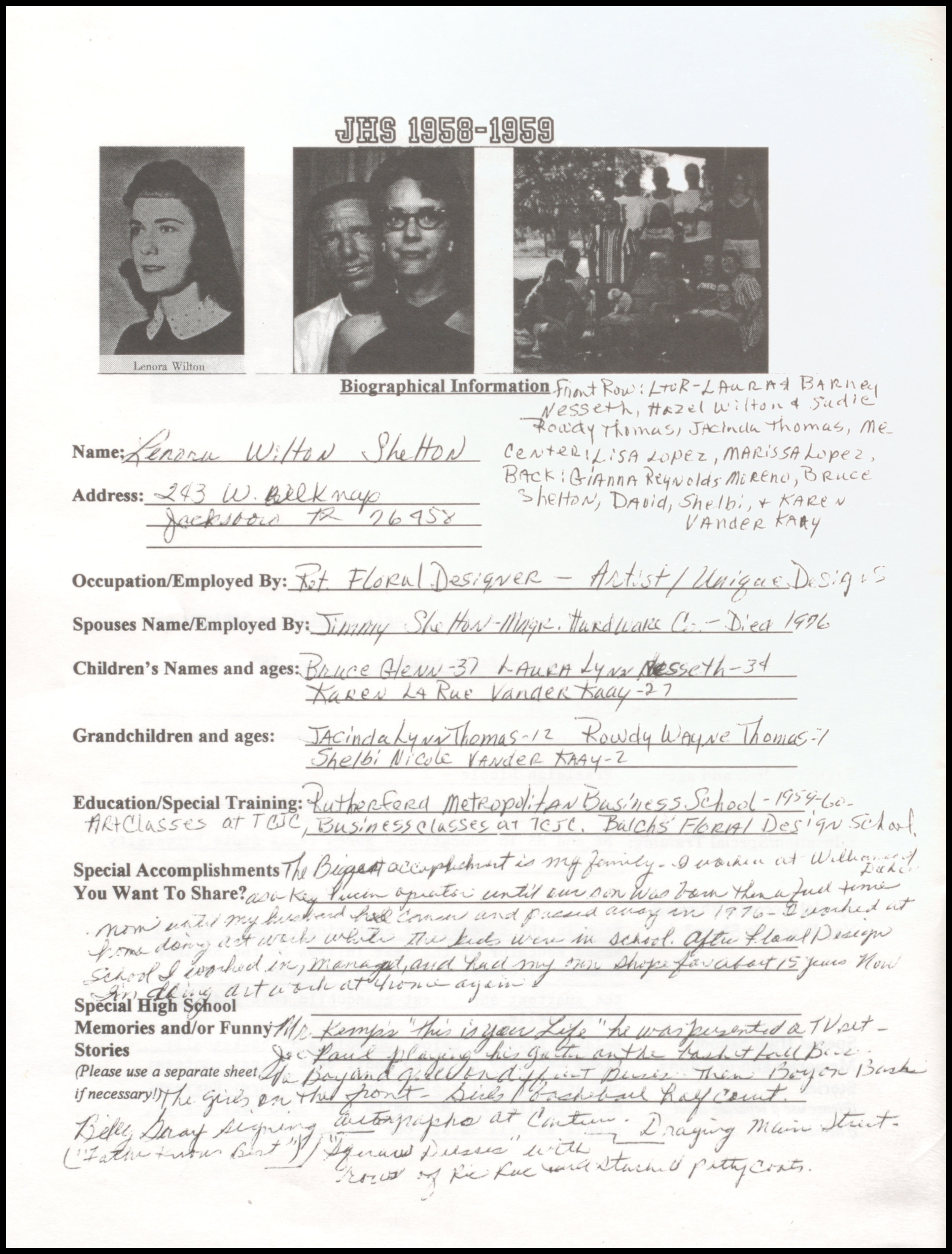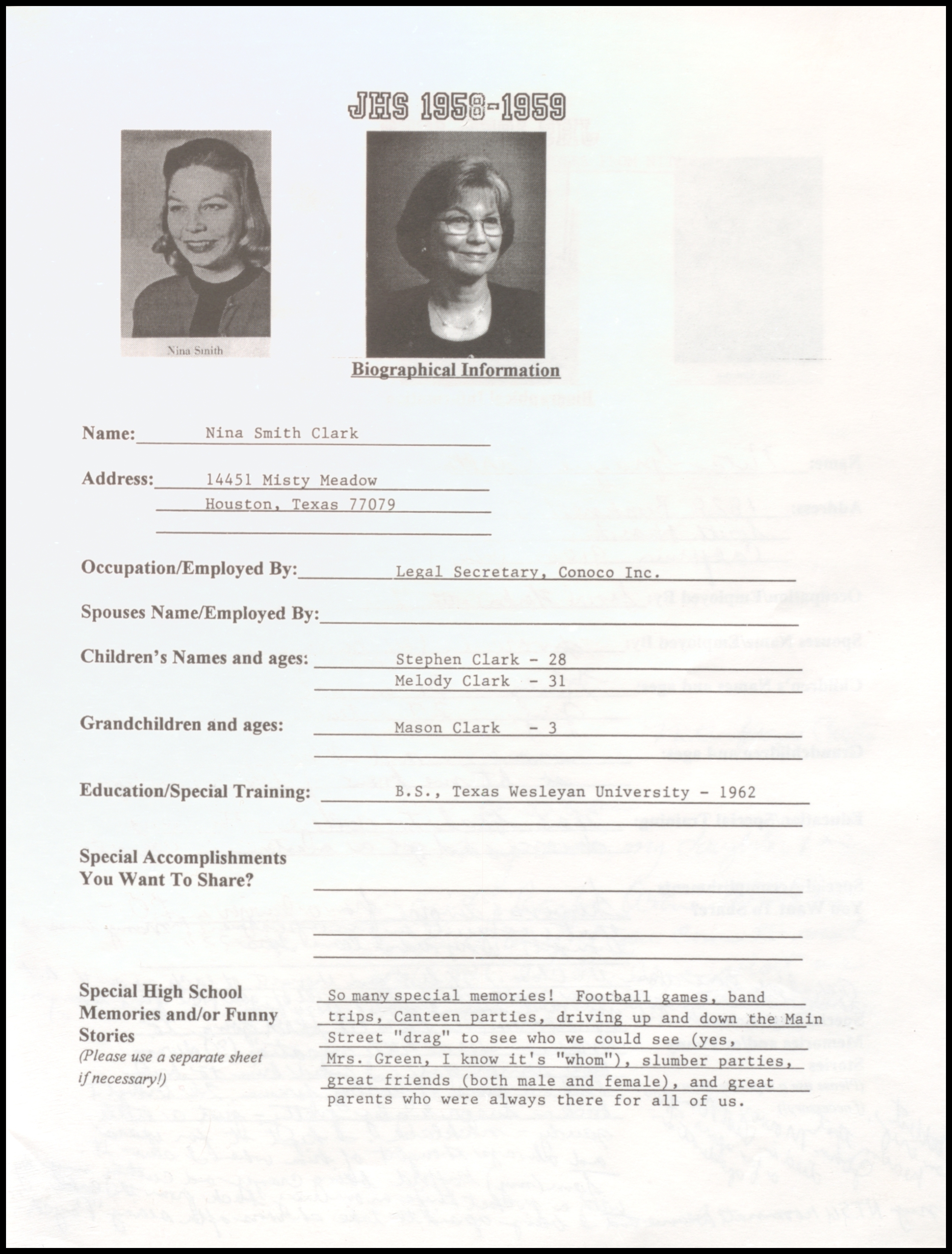 of 1959 - In 1999 - 40th Class Reunion
